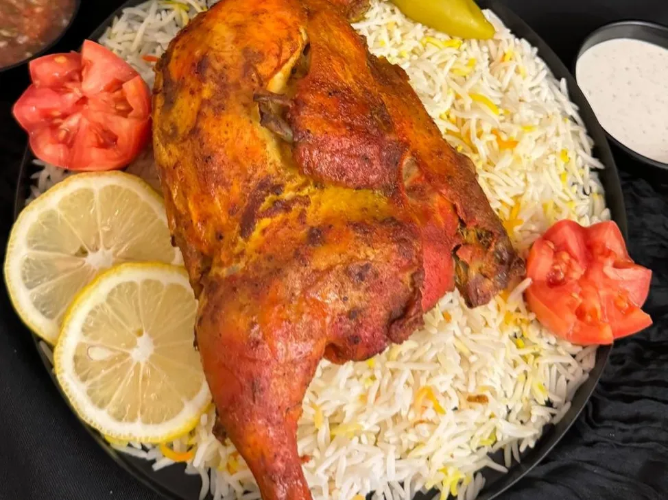 Authentic smoked chicken (Mendi) cooked with traditional Yemeni spices and served over fragrant rice. Half and whole chicken options can be served as platters or family-style portions suitable for groups of 5+.